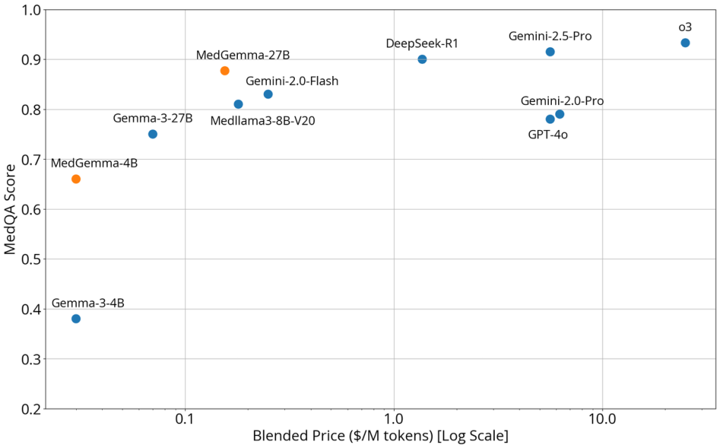 Its small size makes MedGemma highly efficient for fine-tuning, and remarkably, its baseline performance on clinical reasoning tasks (as measured by MedQA) rivals much larger models.